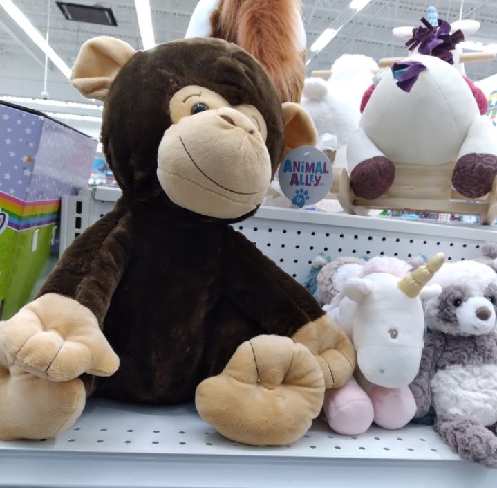 Mr. Monkey was created in the Animal Alley and was living on the shelves of Toys "R" Us for a very long part of his life. He was constantly looking at people passing by in the stores, and hoped that one day someone would take him home.